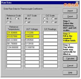 可輸入或導入校準的電阻或電壓原始數(shù)據(jù)。TableWare