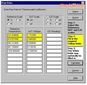 您了解了 MET/TEMP II 軟件的優(yōu)勢,,但未訂購具有 RS-232 端口的福祿克公司計量校準部的儀器,,或者可能已錯誤地購買了能力欠佳的同類產(chǎn)品。 您不必沮喪,,因為我們已經(jīng)為您提供了補救方法!我們的 TableWare 軟件包除了無法與 MET/TEMP II 數(shù)據(jù)庫連接,,可以完成 MET/TEMP II 中 Coefficients 和 Tables 實用程序能完成的一切操作。TableWare 是計算和生成數(shù)據(jù)的軟件包,,且使用手動輸入的數(shù)據(jù)。該軟件包更會節(jié)省您在計算上花費的時間和金錢,,因此是個絕好的選擇。 TableWare 可計算 RTD、熱敏電阻和熱電偶的系數(shù)。它使用 ITS-90、IPTS-68、Callendar-Van Dusen 和多項式方程。TableWare 還可生成溫度對電阻、溫度比較率或溫度對熱電勢的對比表。 可輸入或?qū)胄实碾娮杌螂妷涸紨?shù)據(jù)。TableWare 會生成系數(shù)、計算余值,,并生成有用的表格。 表格和系數(shù)可導出為文本文件,,以便在其他軟件包內(nèi)進行分析。 TableWare 還可以使用能夠手動輸入的系數(shù)生成表格。不需要原始數(shù)據(jù)!