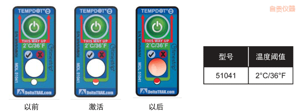 TempDot™ Minus標(biāo)簽需存儲在室溫下,并且必須在反應(yīng)溫度 以上被激活。激活是通過用手指推壓,標(biāo)簽 底部的小窗口變?yōu)榧t色或部分變紅色以指示激活,但激活后并不需要保持紅色。當(dāng)使用了上述反應(yīng)溫度 標(biāo)簽的產(chǎn)品暴露于閾值以下的溫度,白色的大窗口變?yōu)榧t色或部分紅色,,在反應(yīng)溫度 以上將溫度標(biāo)簽用 于產(chǎn)品。如果一個產(chǎn)品暴露于閾值以下的溫度,白色的大窗口變紅色或部分紅色,,TempDot™ Minus標(biāo)簽 提供即時的視覺指示。為達(dá)到最佳效果,標(biāo)簽應(yīng)保持垂直位置,,其反應(yīng)期間,紅色箭頭須指向上方。